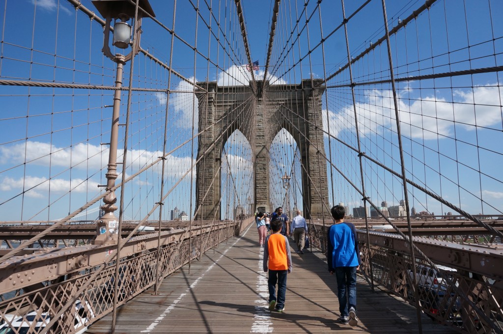 When the Brooklyn Bridge was first built, in 1883, it was the first steel-wire suspension bridge and the longest suspension bridge in the world. It spans 1.3 miles across the East River and takes about 20 minutes to walk, depending on how fast you walk and how many times you stop to take pictures. Because of the heatwave while we were there, it was very hot so we decided to turn around at the halfway point. The next time I visit, I would love to walk across the bridge to Dumbo (Down Under the Manhattan Bridge Overpass) and get the iconic shot of the Manhattan Bridge.