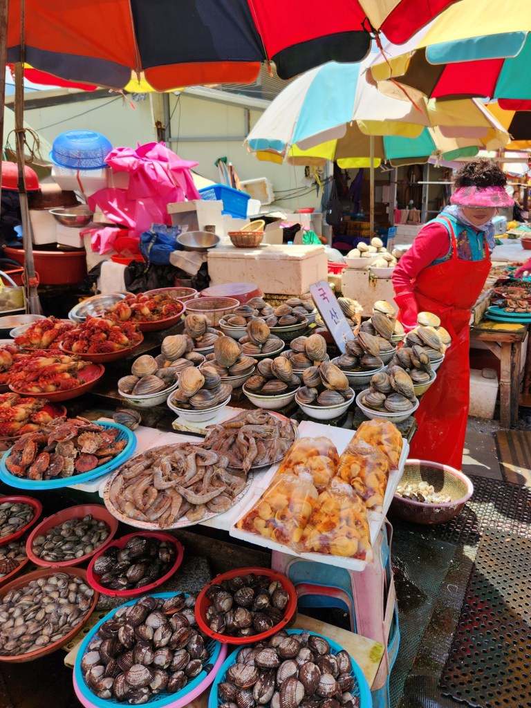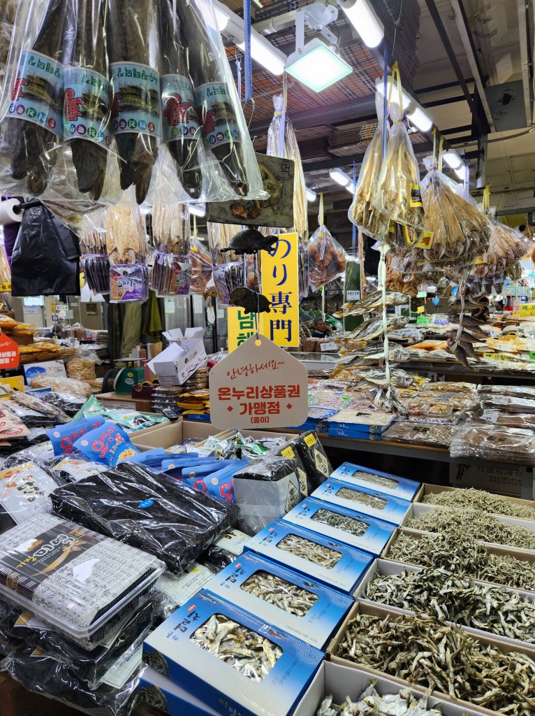 Jagalchi Fish Market is Korea’s largest seafood market that sells fresh and dried fish. Most of the people who sell fish are women and this tradition has been carried on from the Korean War when many men were at war while their wives took over the family businesses.