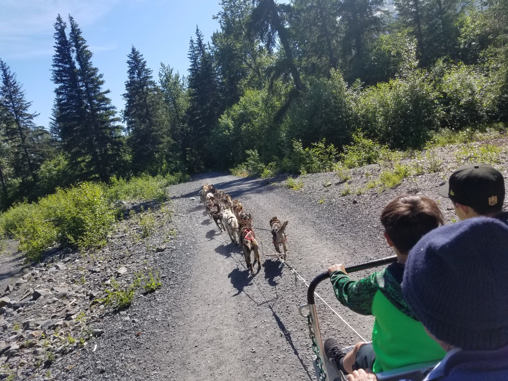 Seavey’s IdidaRide Sled Dog Tour includes a 1.5 hour Alaska Dog Sled Tour and Kennel Tour. It is a 2-mile dog sled ride through the Seward Alaska wilderness to the base of Resurrection Mountain and along Box Canyon Creek. It was so much fun!
