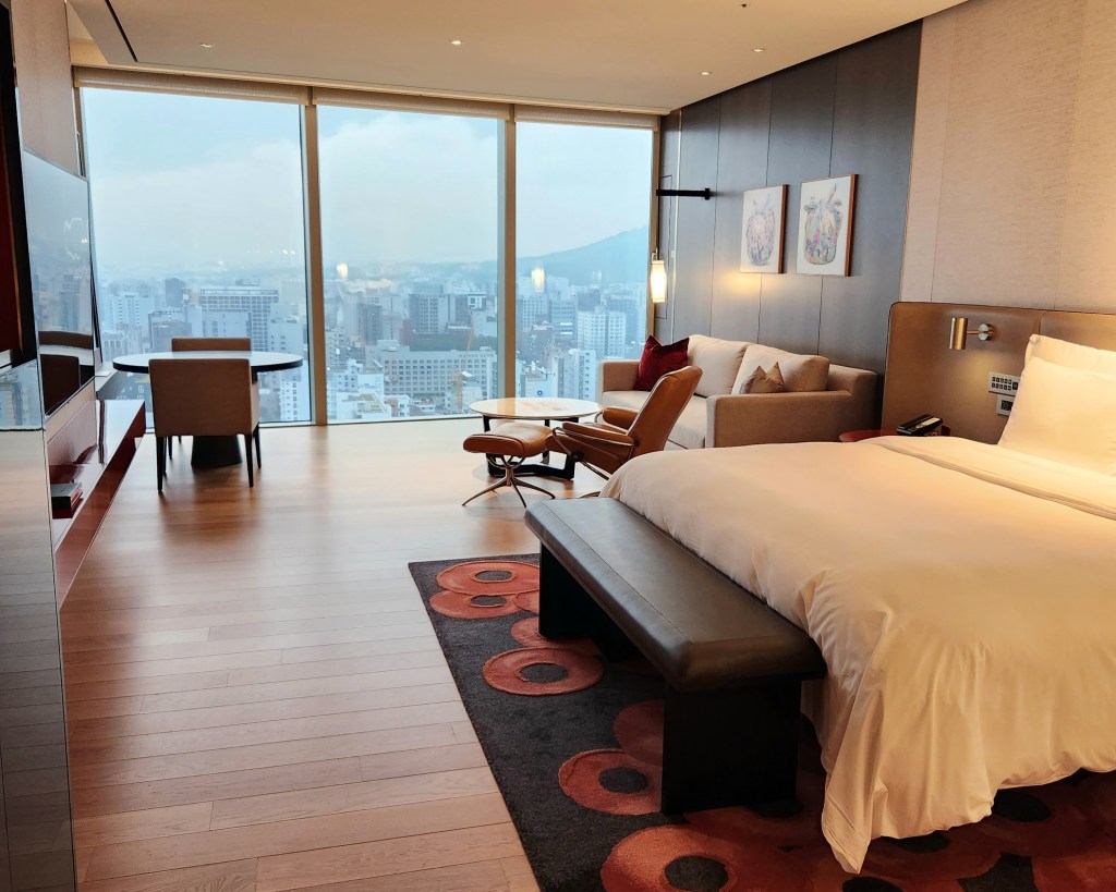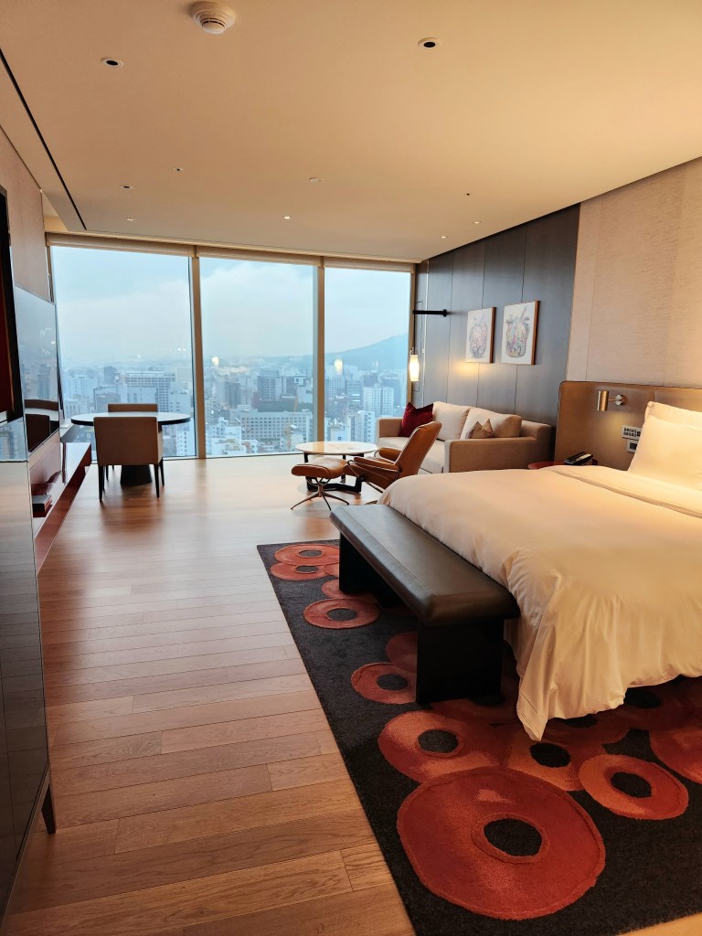 Grand Hyatt Jeju is a luxurious 5-star hotel and an absolute must in Jeju! Definitely grand, to say the least. It is the largest Grand Hyatt in Asia Pacific and a 10-minute drive from Jeju Airport. It includes 14 restaurants and bars and the HAN Collection K-fashion mall. See more of Grand Hyatt Jeju in my post here.
