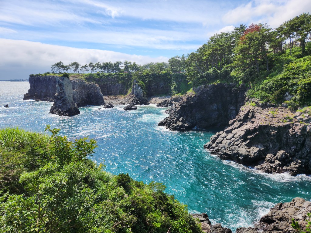 Jusangjeolli Cliff is a stunning volcanic rock formation located at the southern coast of Jeju Island and a very popular tourist attraction.