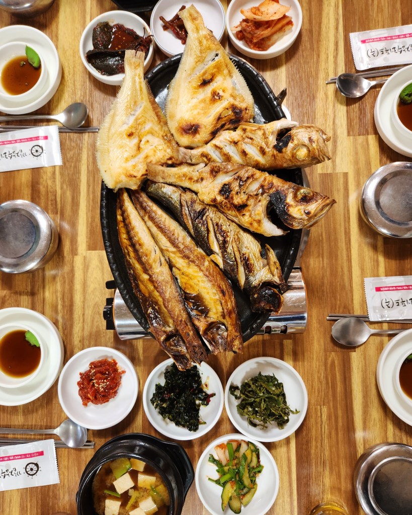 When you visit Sokcho, look for a restaurant that makes grilled fish. We were told that it is hard to find restaurants that serve grilled fish. Sokcho is a port city with fresh seafood available year-round.