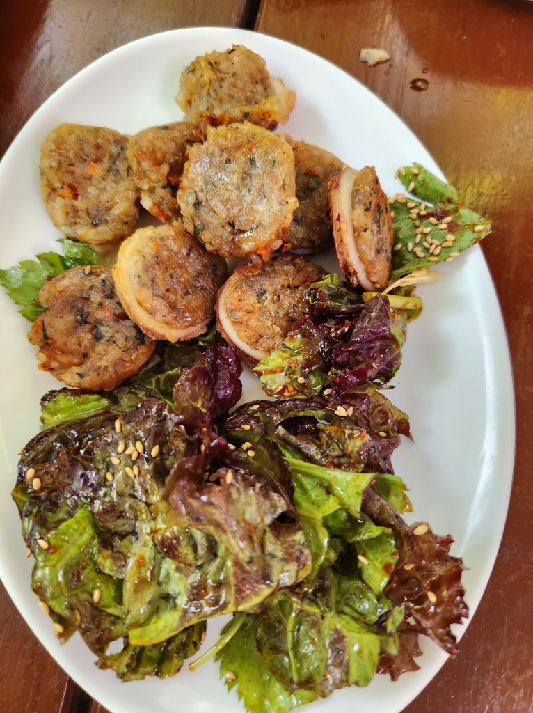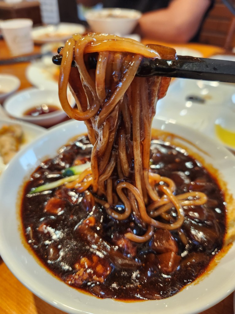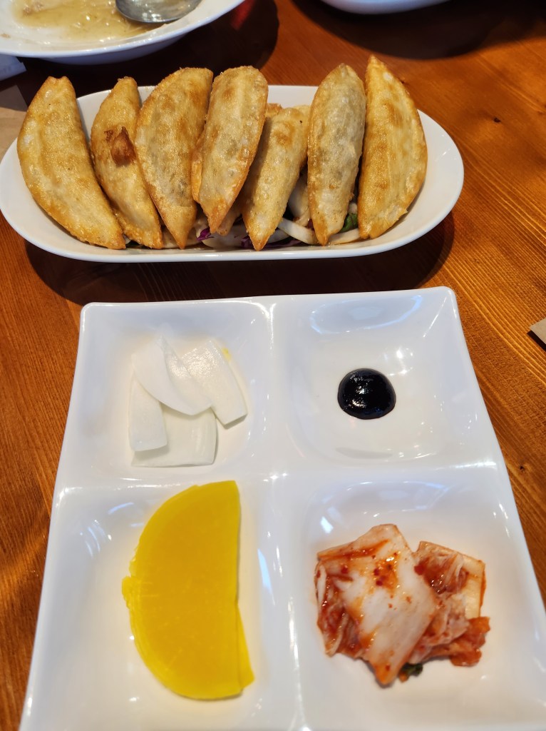 These tasty noodles are made with black bean paste as well as other ingredients such as pork belly, zucchini, and onion. I couldn’t go to South Korea with having some Jajangmyeon! Sure enjoyed it with the side order of fried mandoo.