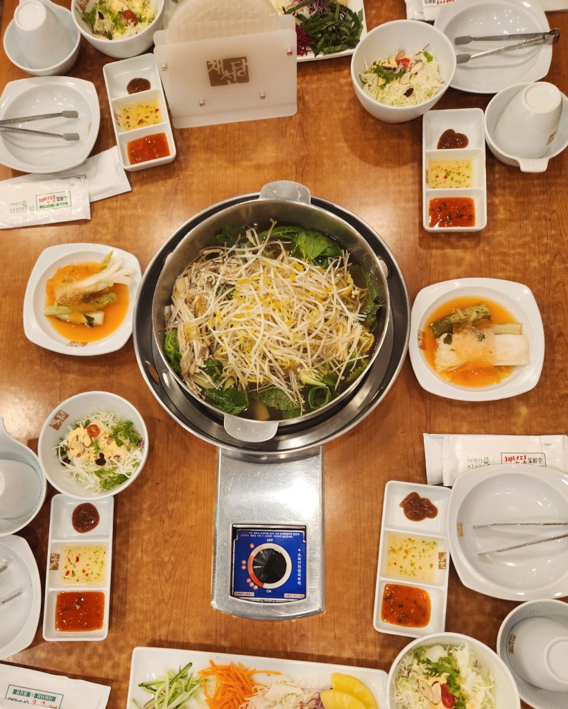 Porridge is another popular dish, which we even got to enjoy on our plane ride coming home. After our Shabu Shabu dinner (shown below) in Sokcho, the server made a delicious pot of porridge with the remaining broth. I was so excited to eat the porridge, I forgot to take a picture.
