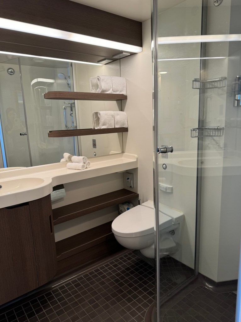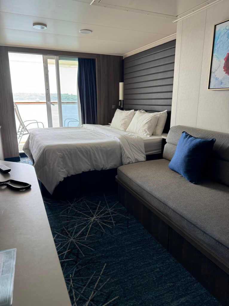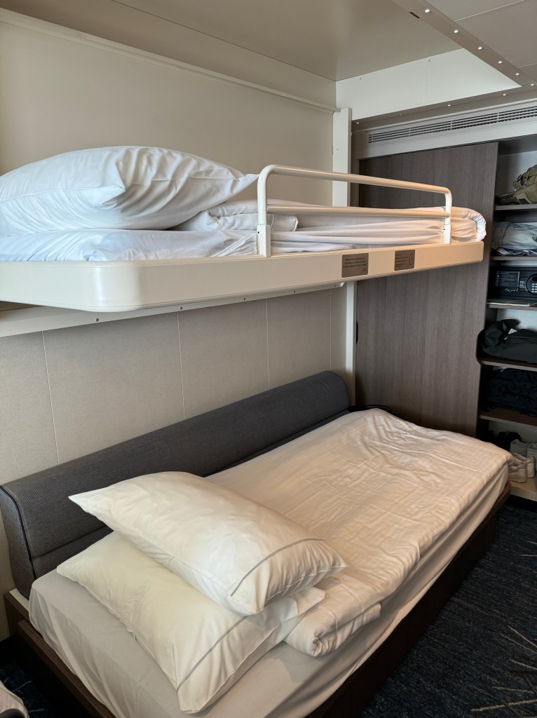 If you are staying in a balcony stateroom, I recommend taking medium sized suitcases since they are the largest size that fits under the bed. This will save a lot of space. The balcony stateroom accommodates four people. We brought four medium sized suitcases, one carry-on, and three backpacks. We put three suitcases under the bed and one in the closet. There are also two drawers under the bottom bunk bed for additional storage.