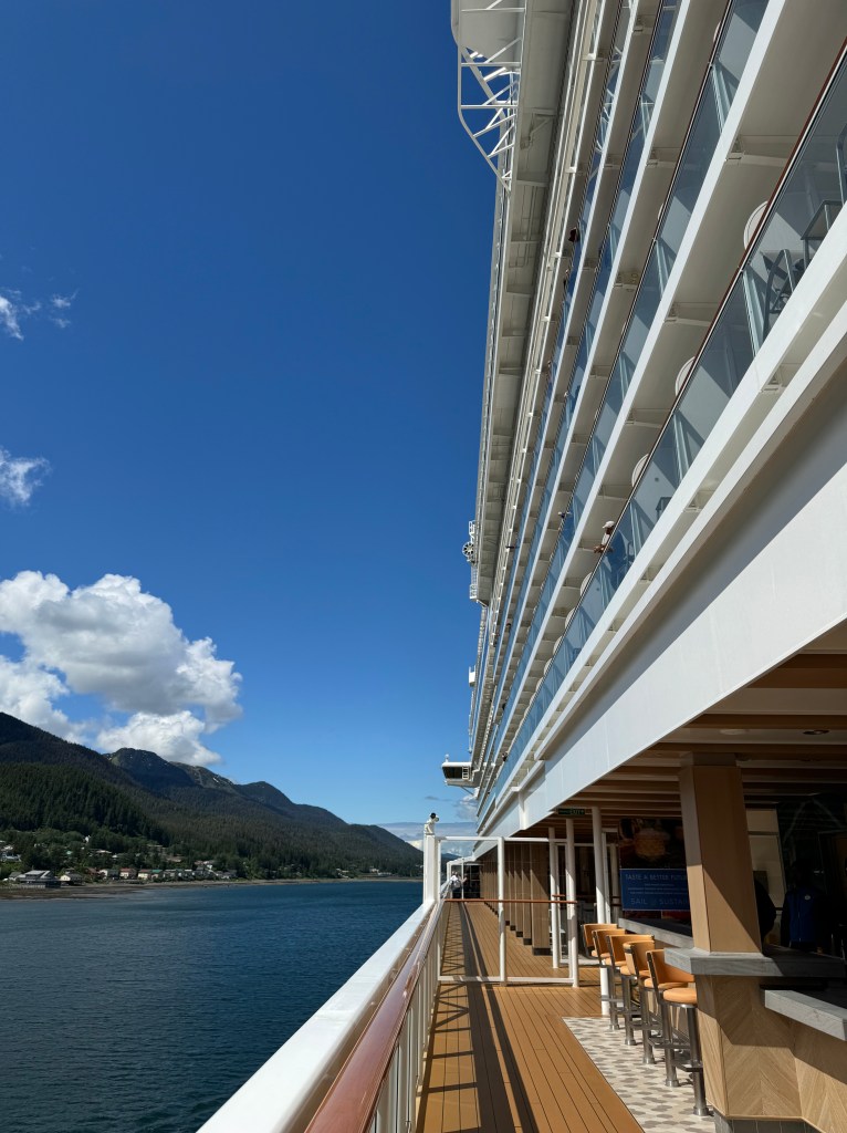 When you port in each city, there will be shuttles available to take you to the downtown area and back. If you enjoy walking, you will be able to walk to downtown in Juneau and Skagway. The walks are beautiful but it is also nice to have the option of catching a shuttle. You will need to catch a shuttle in Ketchikan and Victoria. Although the shuttle line in Victoria might look very long, there are many double-decker busses going back and forth so the wait is not too long.