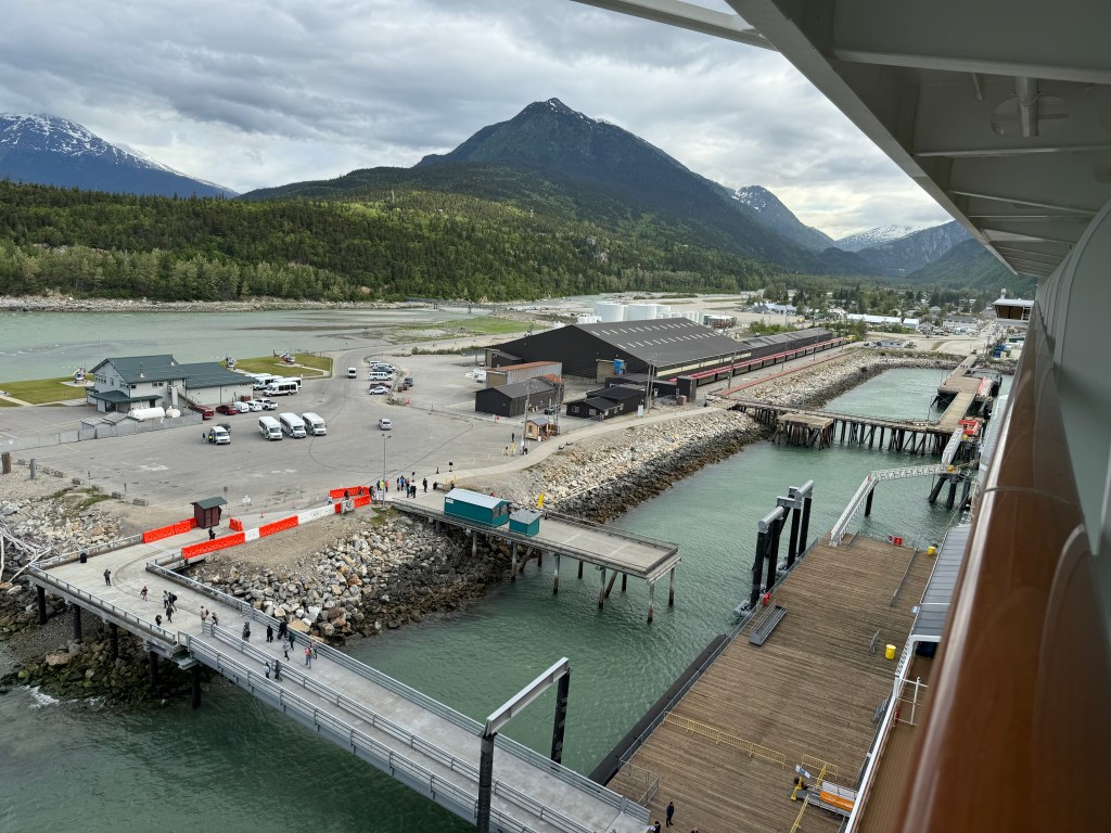 One of the popular shore excursions in Skagway is the White Pass & Yukon Route Scenic Railway. It is about a 2.5 hour narrated ride on a vintage train with beautiful views of mountains, glaciers, and gorges. The start of the train ride is a short walk from the ship and the train ride ends in downtown Skagway, which is also in walking distance of the ship.
