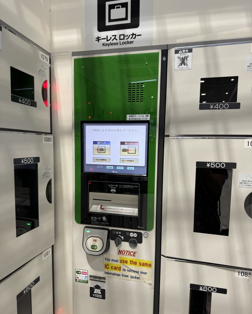 The airport lockers come in very handy as well. They are very convenient and user friendly. We had a whole day to explore before our evening flight. Our hotel check out was before noon and it was too early to check-in for our flight so we left our luggage in the lockers. The lockers we used at Narita Airport ran between 4,000 yen to 6,000 yen per day, depending on the size.