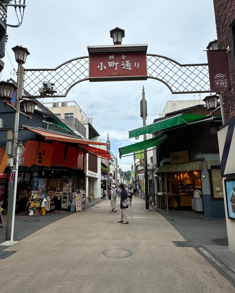 Komachi-dori Street, located right outside of Kamakura Station, is lined with apparel stores, souvenir shops, and eateries.