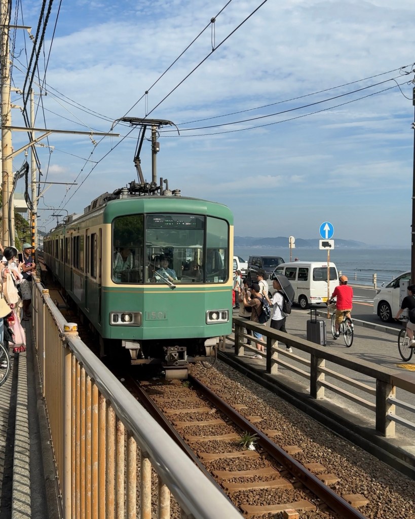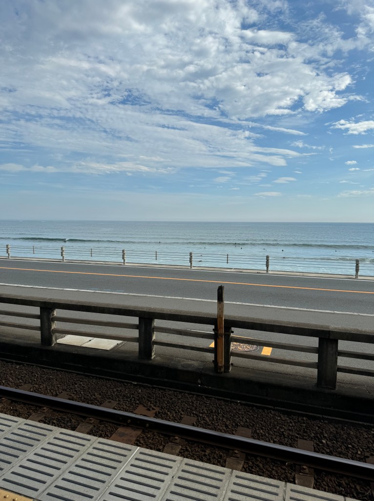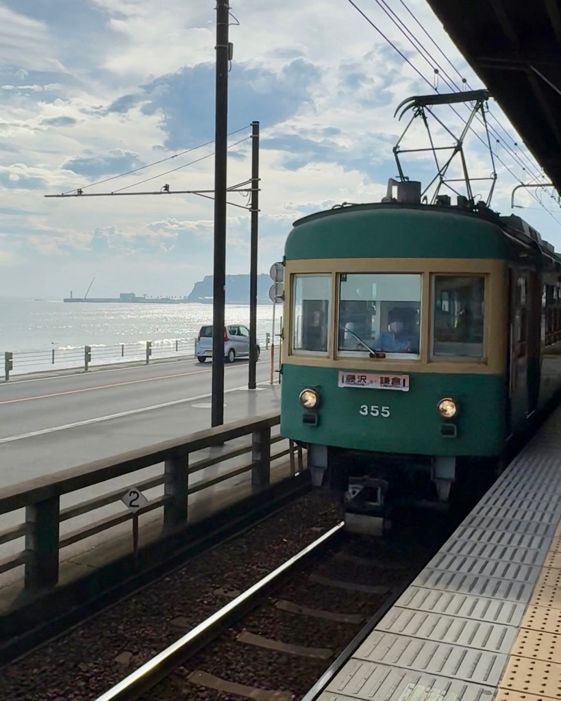 Kamakurakoko-Mae Station is the famous scenic railway station that sits right along the Pacific Ocean. On a clear day, you can see Mt. Fuji from the station platform. We enjoyed the beautiful train ride along the coastline.