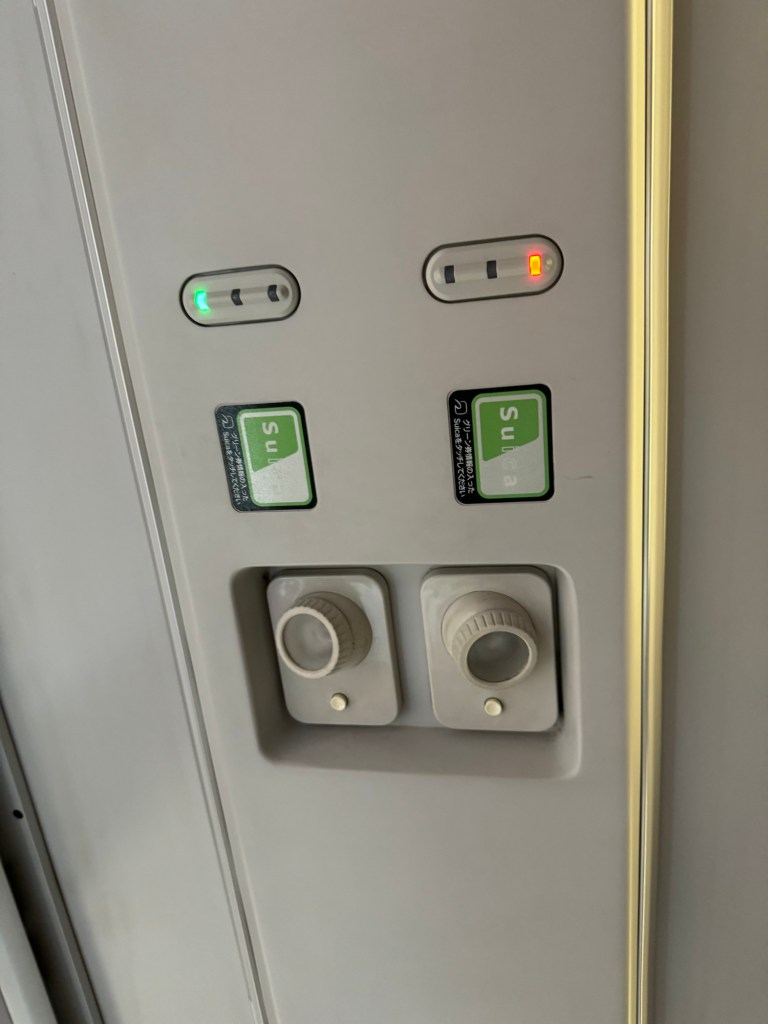 You can purchase the Green Car ticket on the platform at the train station. Once you pick your seat on the train, scan your Suica card above your seat, as shown below.