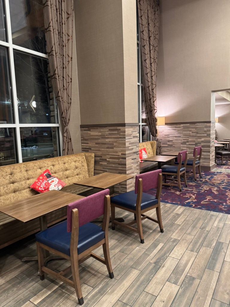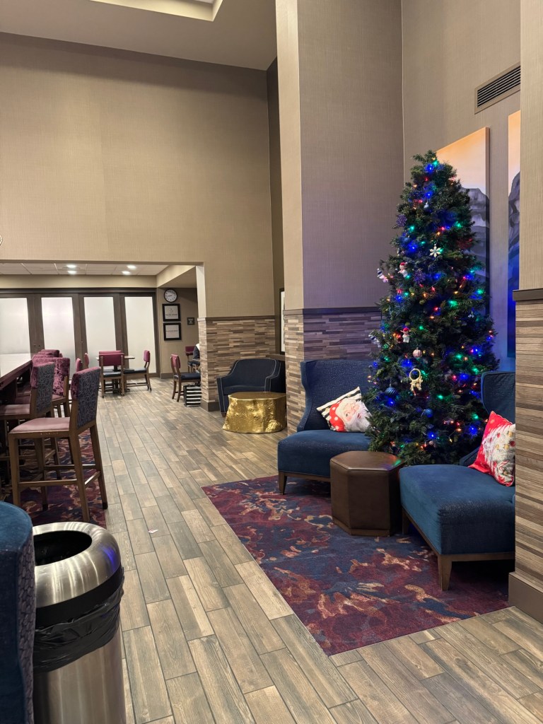 While visiting the magical Christmas town of Leavenworth in Washington, we stayed at the Hampton Inn & Suites Leavenworth. The hotel is located 5 minutes away from downtown Leavenworth. This is a little further than most hotels, but it’s a beautiful place to stay. There is also a Safeway next to the hotel!