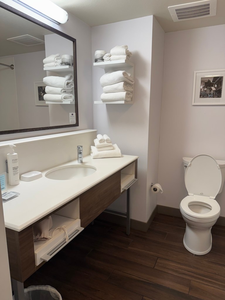 The beautiful modern rooms are clean and spacious. They do not provide housekeeping unless you request it but you can get new towels every day. It’s a small hotel so you may need to go to the lobby to get the towels. There is also a heater, which is a must especially during those cold winter months.