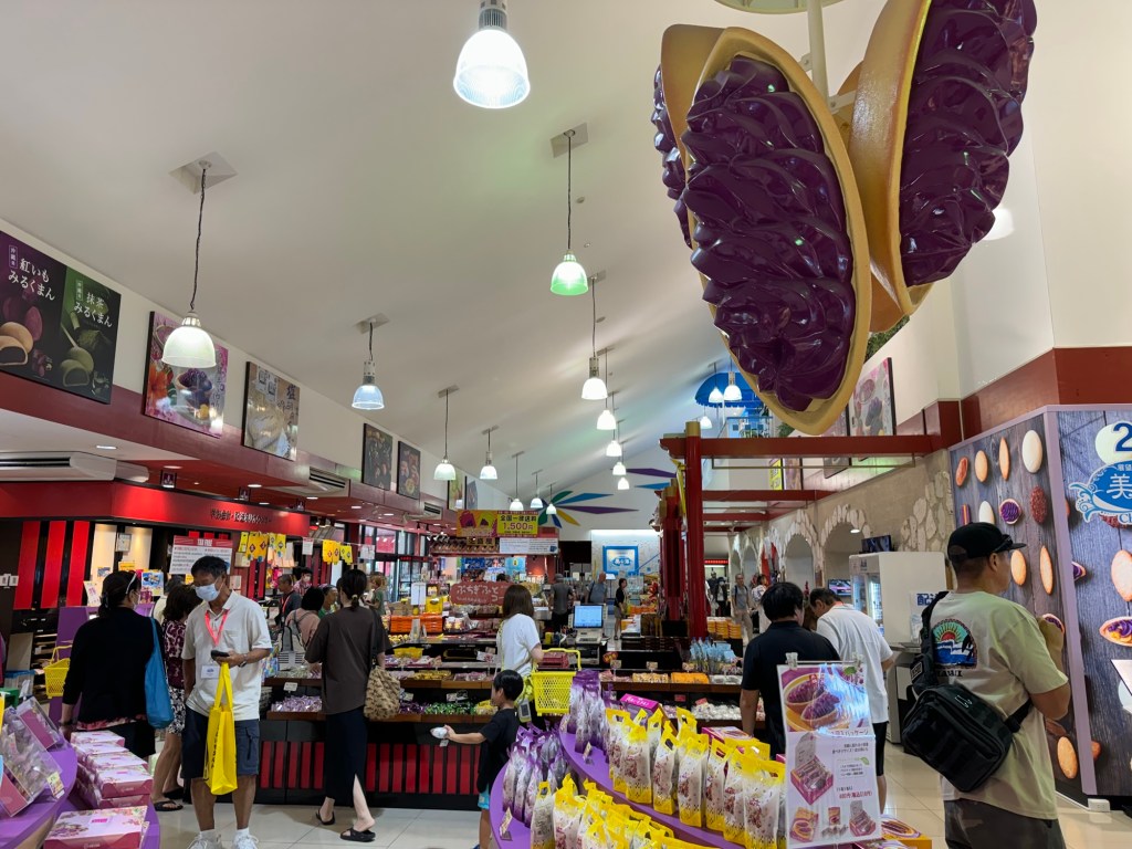 Okashigoten Onna Shop is located along the coastline of Onna Village. It’s the original beni imo (sweet potato) tart shop, where you will also find other sweets and souvenirs. Enjoy tax-free shopping with beautiful ocean views.