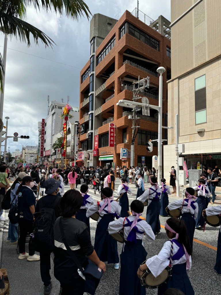 The festival starts with a parade on Kokusai Street and passes Hotel Jal City Naha, the hotel we stayed at.