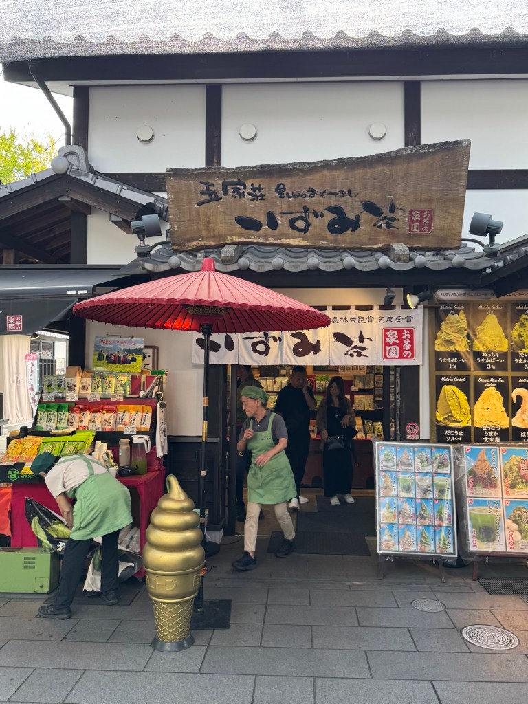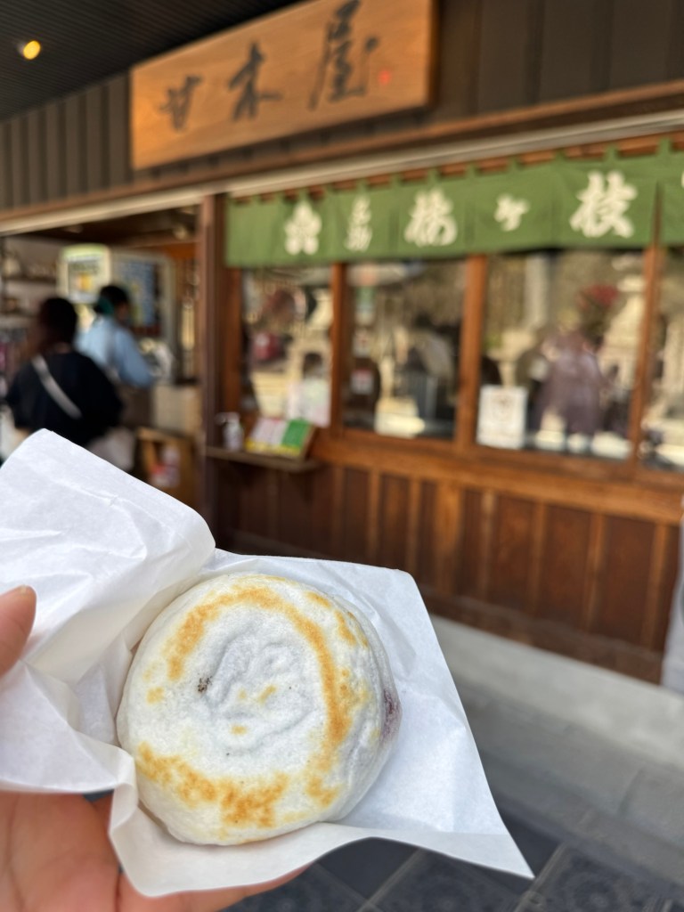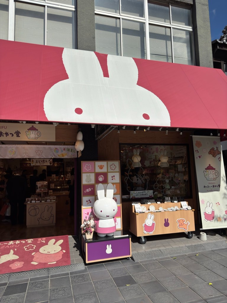 Dazaifu Tenjin-dori is a pedestrian street that connects the train station to Dazaifu Tenmangu Shrine. It’s known for its traditional atmosphere, shops, and local treats like umegae mochi.